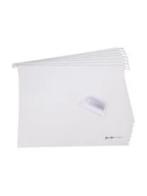 Die Hängeregister-Box mit acht Mappen und einem Deckel ist für Dokumente bis DIN A4-Format geeignet.